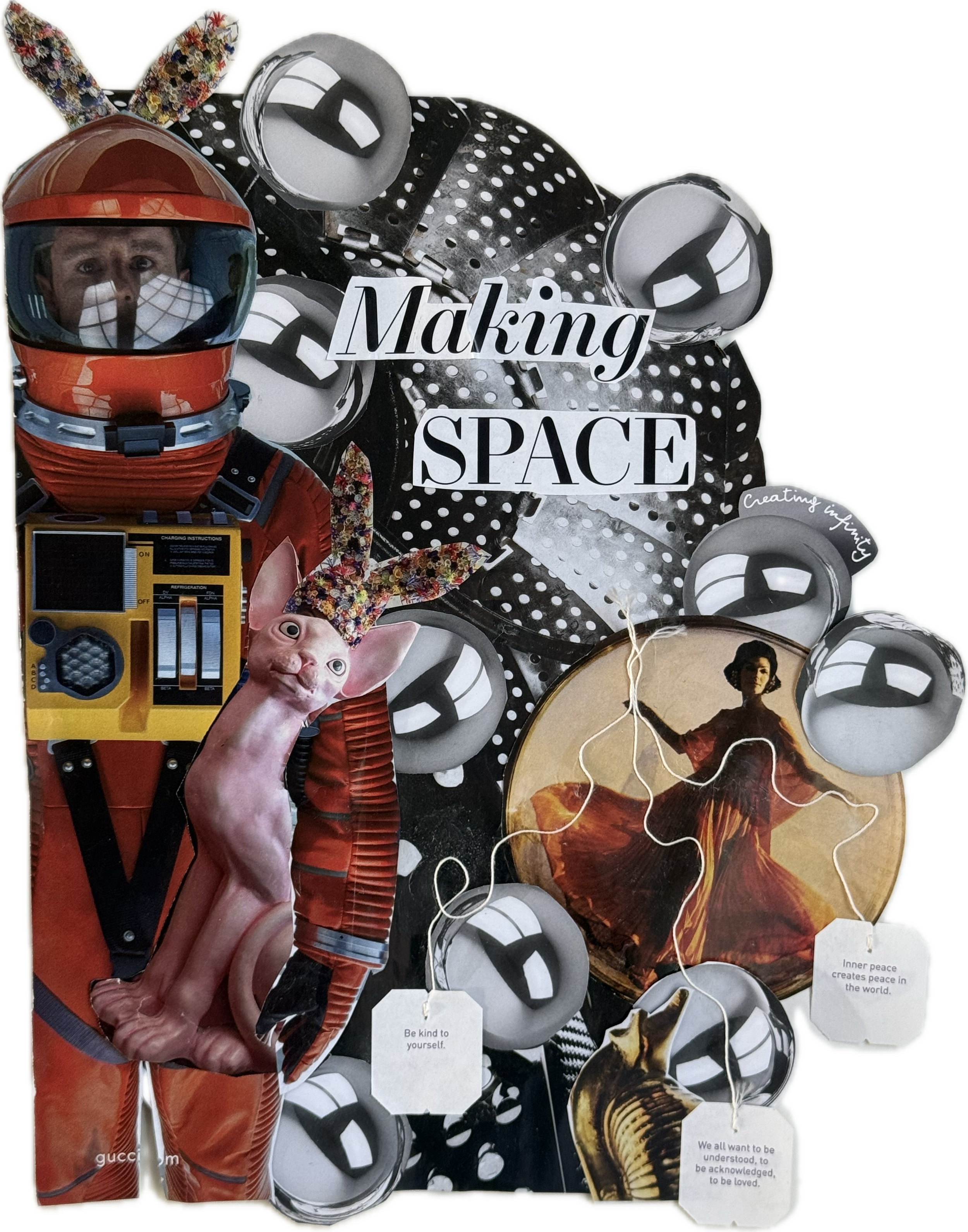 With a background in neuroscience, I’m fascinated by how art can regulate emotion, lower stress, and light up reward pathways in the brain. But beyond the science, it just helps. Collaging is how I process life: slowly, honestly, and one torn paper at a time.